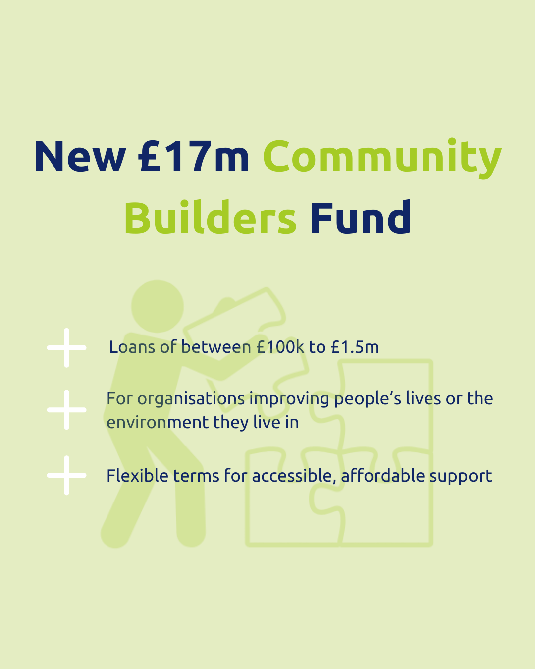 The Community Builders Fund, previously the Recovery Loan Fund, supports impact-led community co-operatives and enterprises across England, Wales, and Scotland with flexible loans of £100k to £1.5m to help them grow and build long-term resilience.